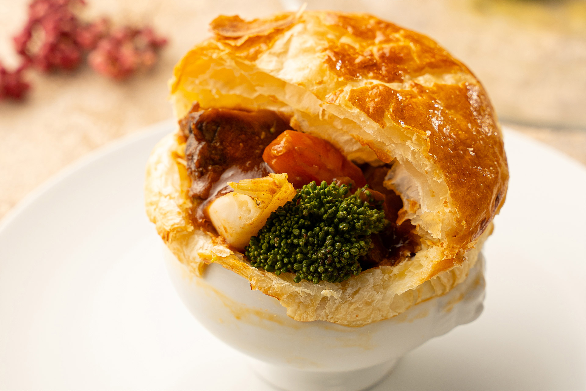 肉料理は、長崎味噌の風味を生かしたビーフシチューをパイで包んで焼き上げました。